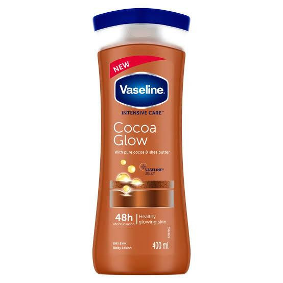 لوسیون بدن Cocoa Glow کاکائو وازلین VASELINE COCOA GLOW INTENSIVE CARE BODY LOTIONبا فرمولاسیون ویژه سبب میشود تا در سه لایه از پوست نفوذ کند، لایه بیرونی، لایه درونی و لایه زیرین پوست.