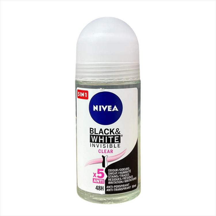NIVEA Black & White Invisible Clear Roll-On – 48H x5 Protection Anti-Perspirant